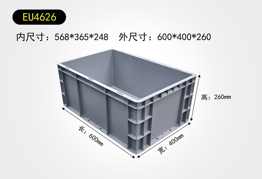 | EU4626物流箱 | 568*365*248 | 600*400*260 | 灰/白/藍(lán) | 印字/燙金 |